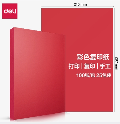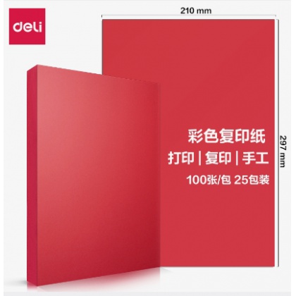 • 商品名稱:得力(deli)A4深紅色復(fù)印紙 彩色打印紙 100張/包 7757 包